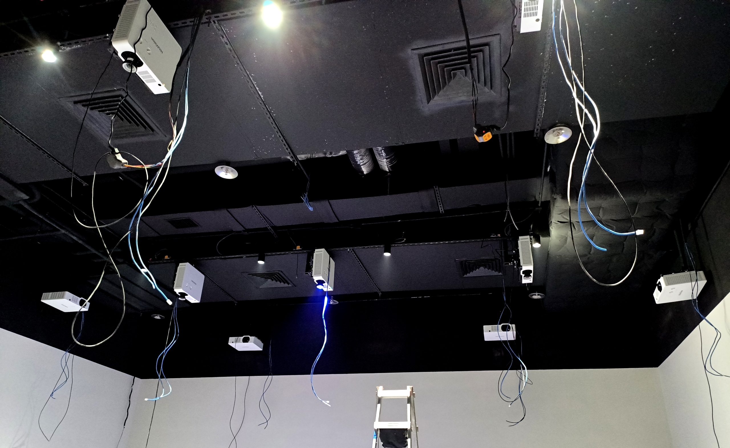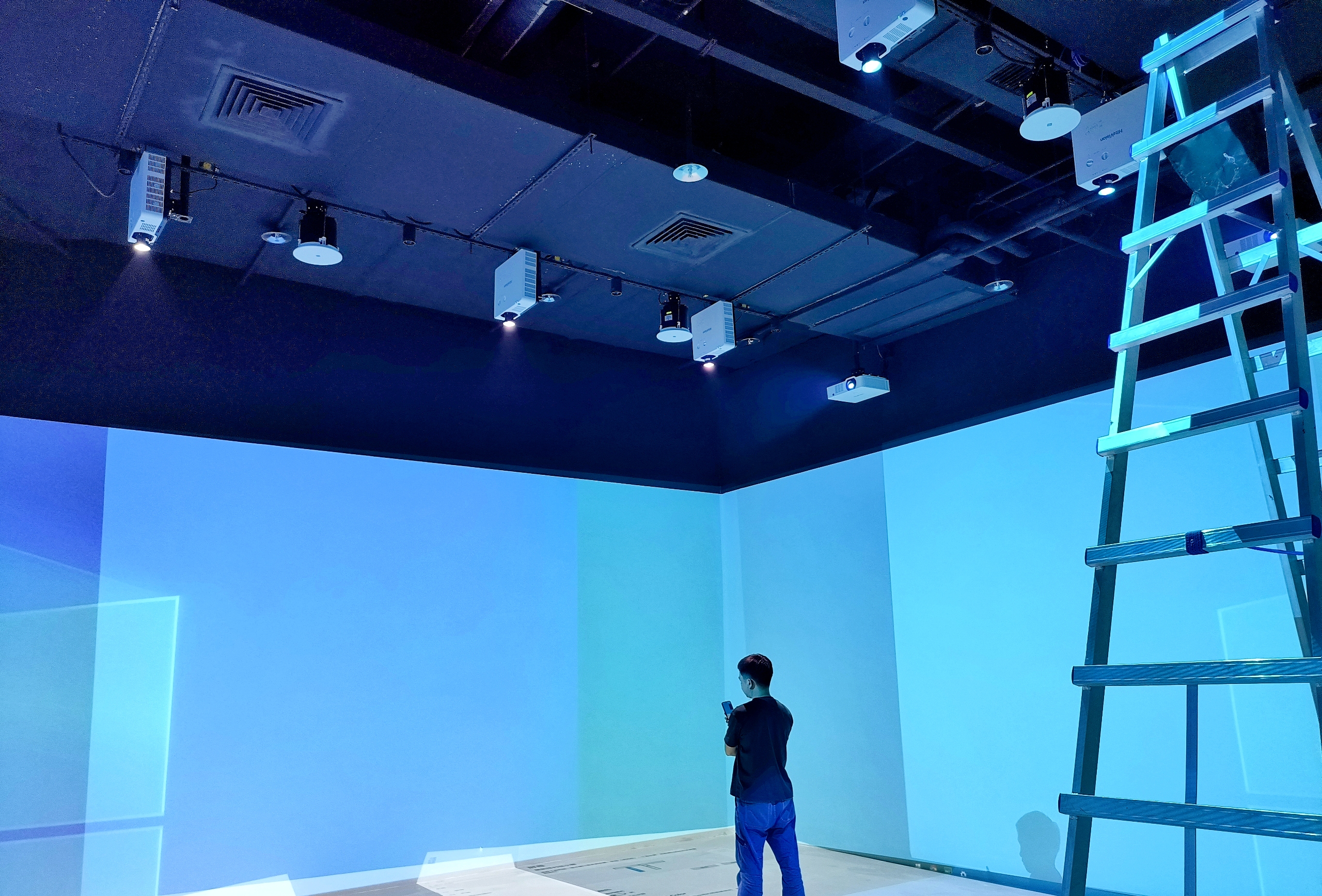 臺設備按設計要求在天花板有序排布,既隱藏了硬件痕跡,又確保每一束光都精準覆蓋墻面與地面的展示區(qū)域,讓 “科技感” 從硬件細節(jié)延伸到體驗的滿足。