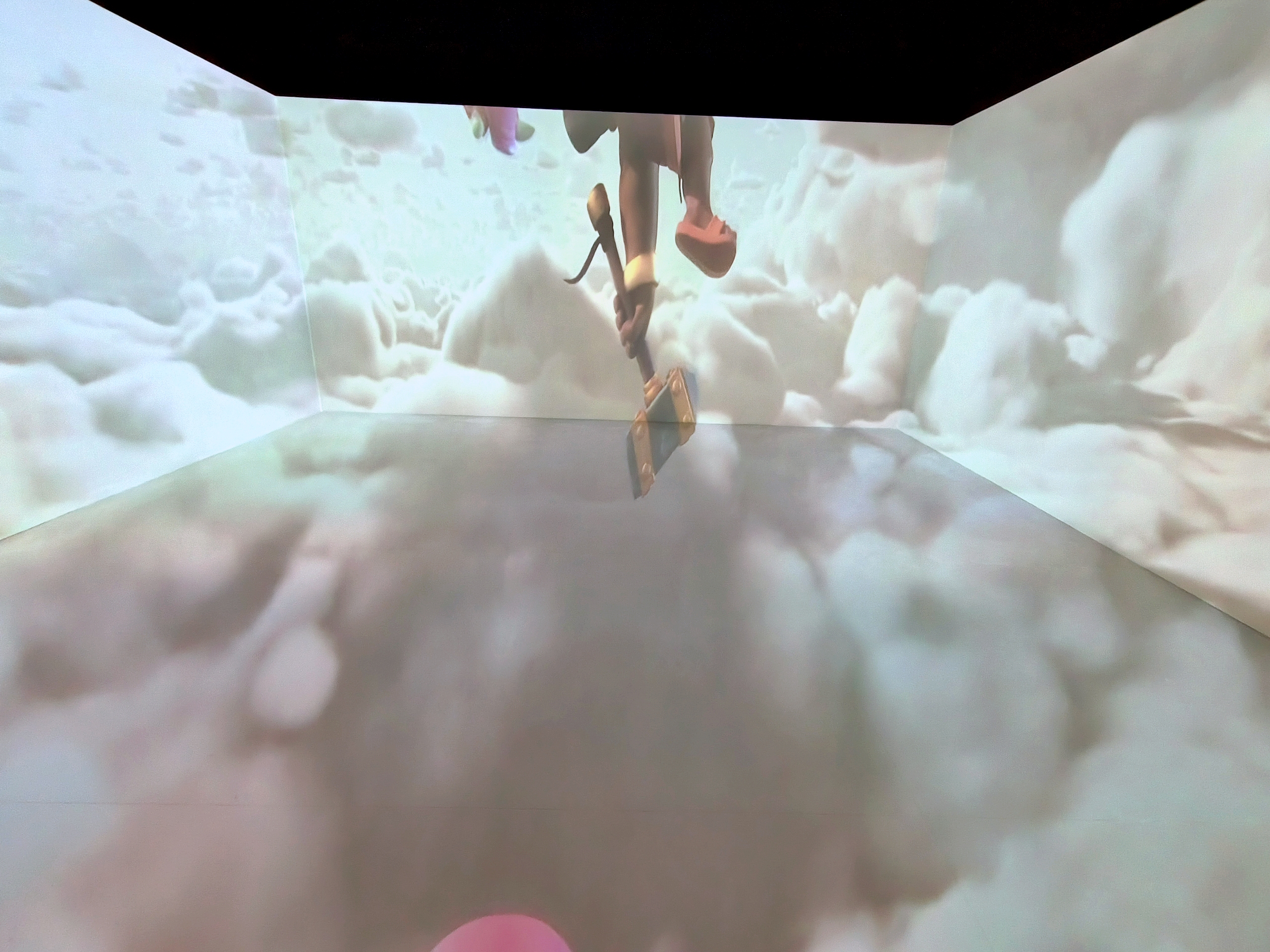 “穿入” 視野;再一抬眼,卡通人握著工具從 “云層” 中探出身來……撲面而來的場景讓訪客瞬間墜入了 “元宇宙角落” 的空間,這些 “視覺魔術” 的背后不僅 12