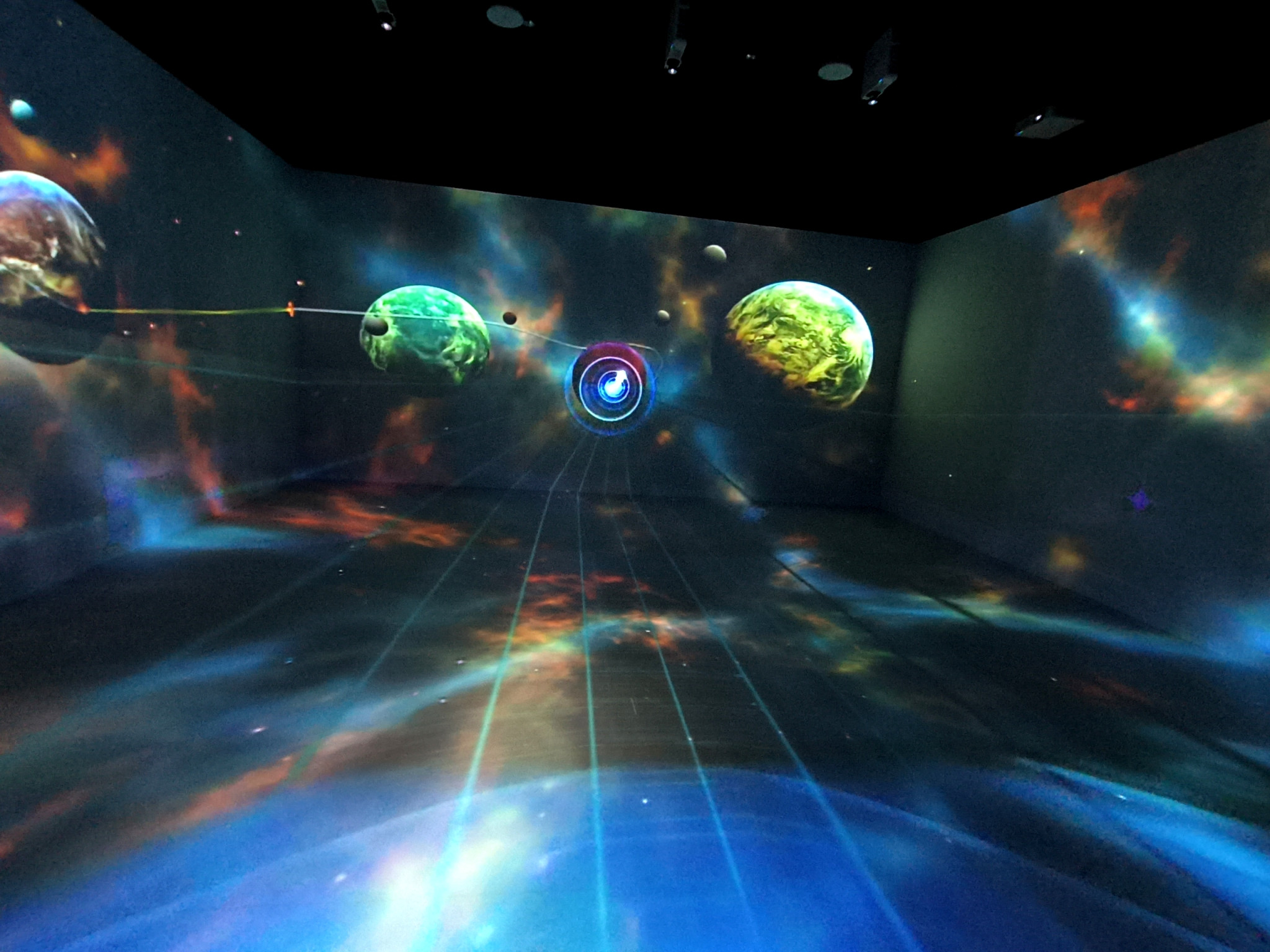 最終化作 “無邊界” 的視覺體驗:從這臺機器投射的 “星球” ,能自然銜接另一臺機器的